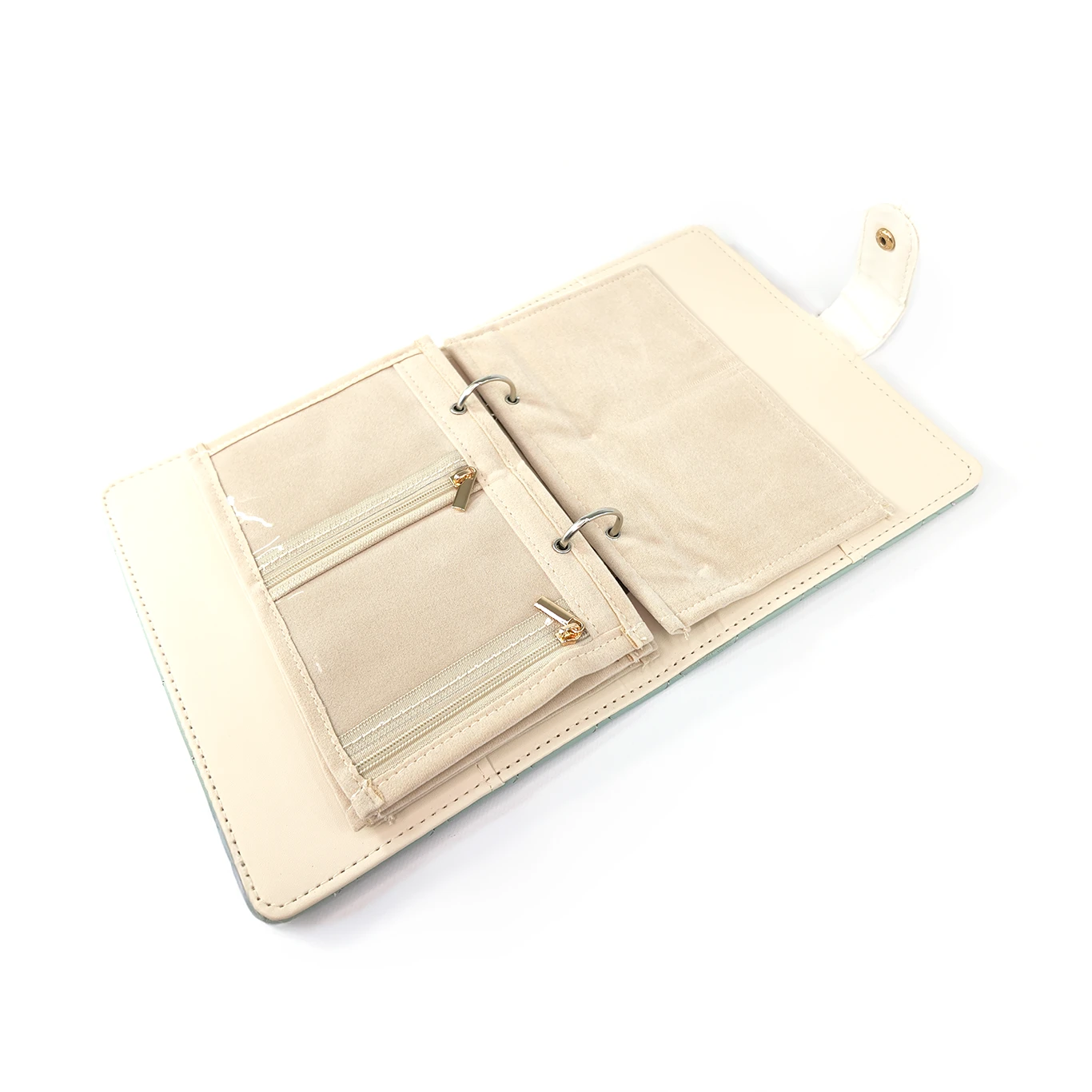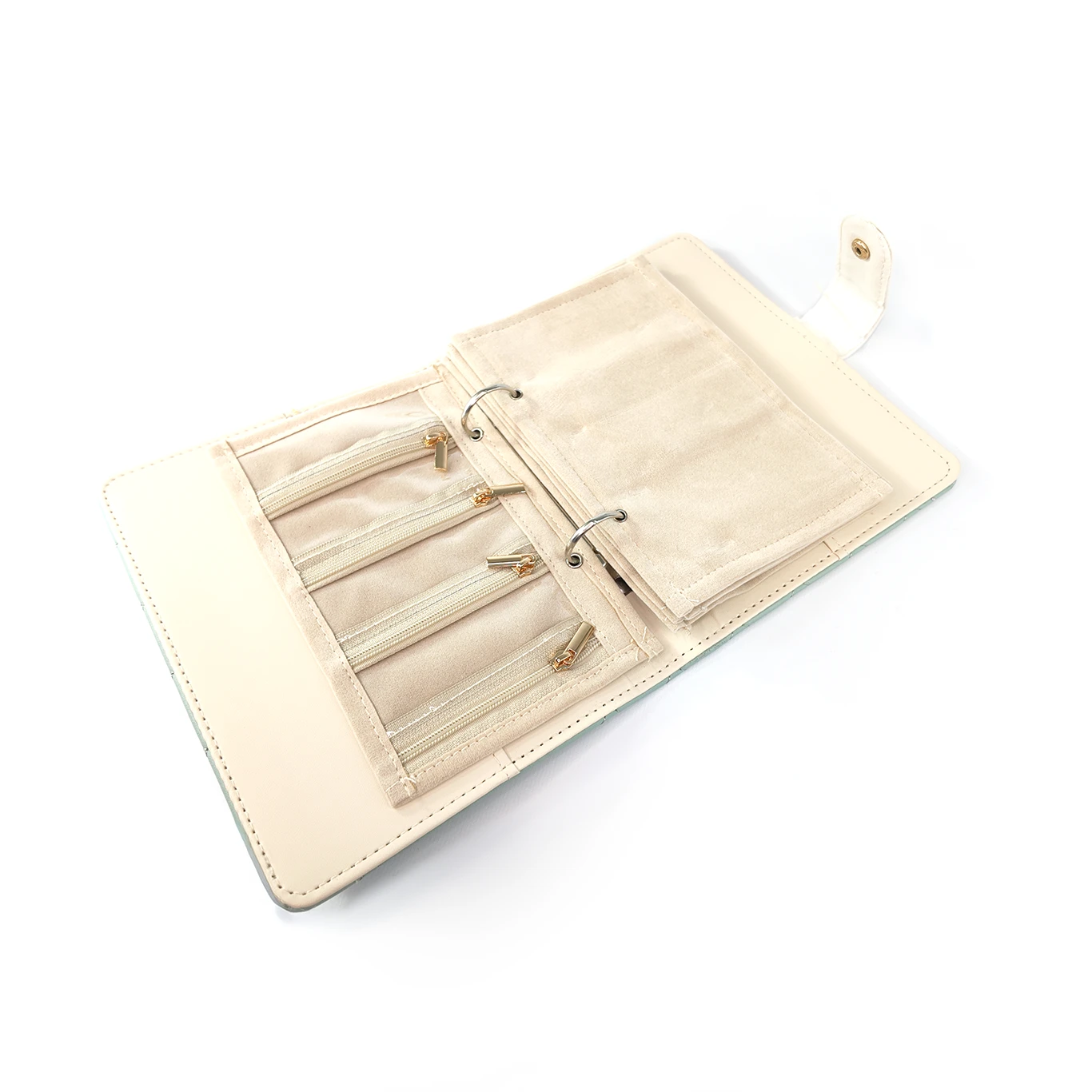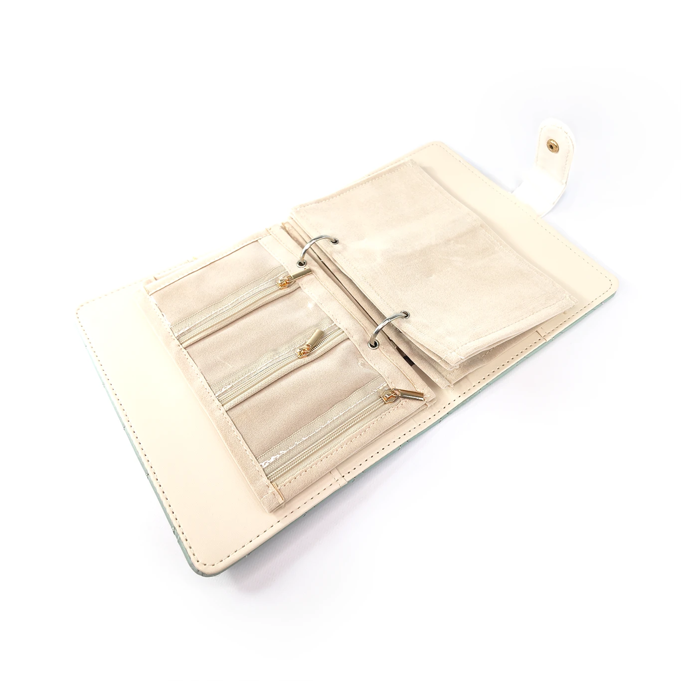 Este alhajero compacto y elegante es perfecto para mantener tus joyas organizadas y protegidas mientras viajas. Con compartimentos para anillos, collares y aretes, su interior suave asegura que tus piezas estén a salvo. Su diseño práctico y estilizado lo convierte en el accesorio ideal para llevar siempre contigo.