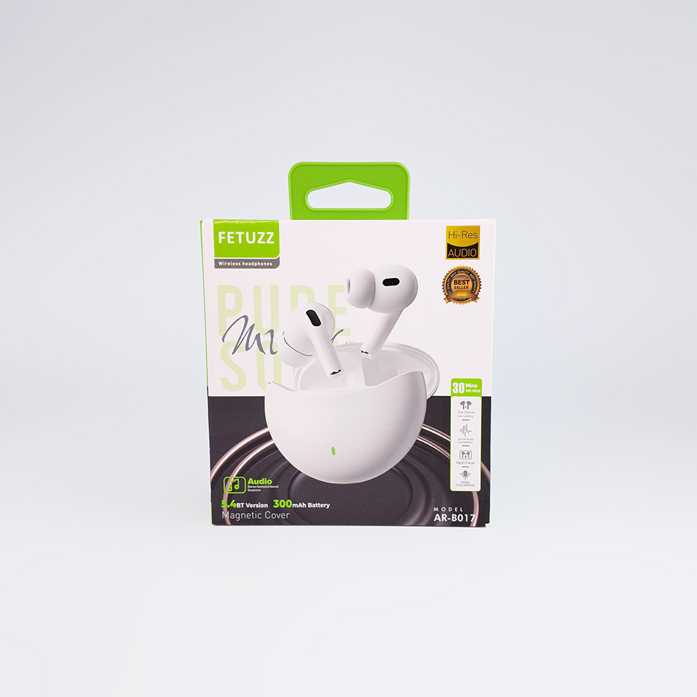 Auriculares inalámbricos FETUZZ modelo AR-B017, diseñados para ofrecer sonido de alta resolución (Hi-Res Audio) y conexión estable con tecnología Bluetooth 5.4. Cuentan con estuche de carga magnético de 300 mAh que brinda hasta 30 horas de reproducción. Su diseño ergonómico garantiza comodidad prolongada, mientras que su micrófono integrado permite llamadas claras y sin interrupciones. Ideales para música, trabajo o deporte.