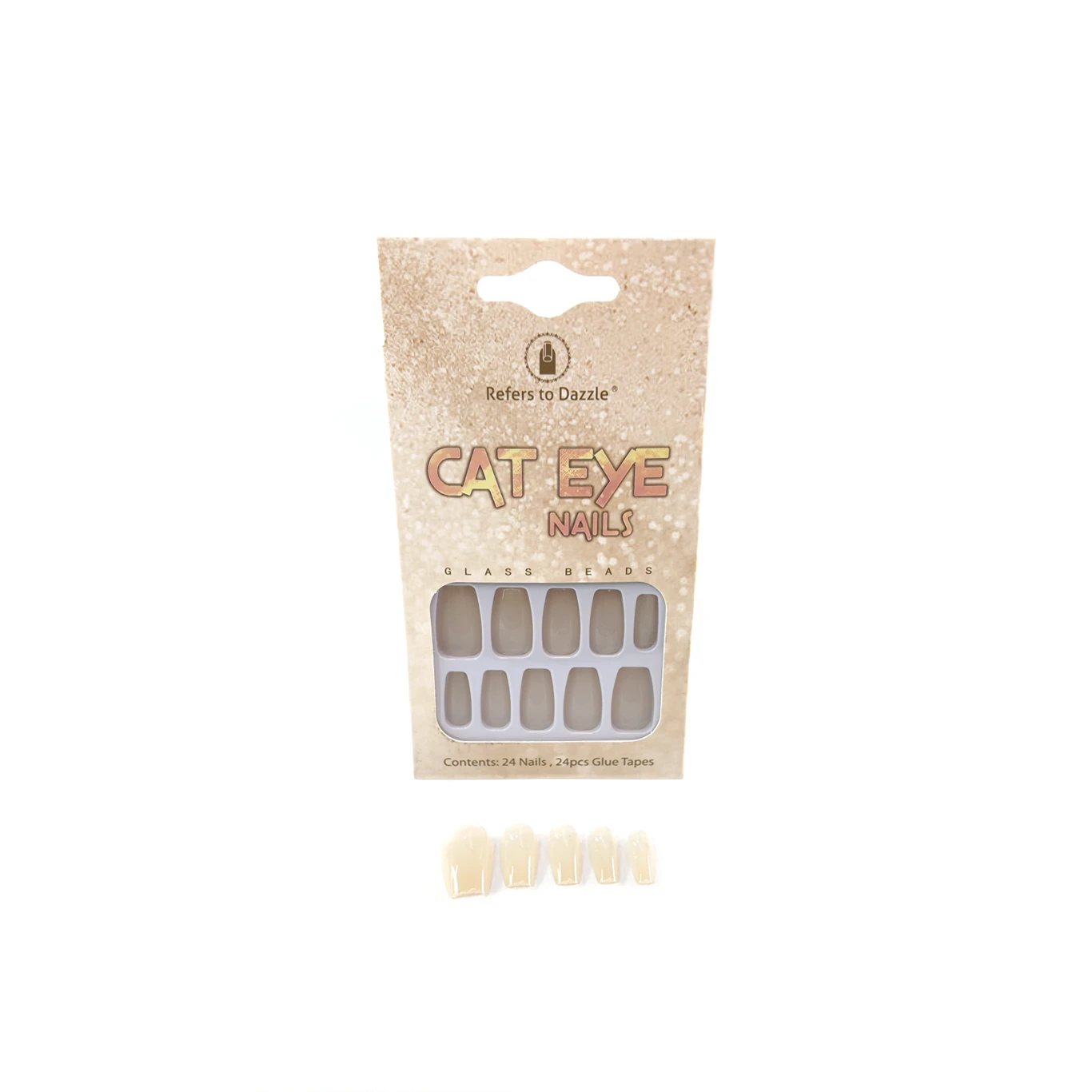 Cada paquete incluye 24 uñas de diferentes tamaños, asegurando un ajuste perfecto para cada dedo. Además, vienen con 24 piezas de cinta adhesiva para una aplicación rápida y sin complicaciones. Ya sea para un evento especial o para un día de uso diario, las uñas Cat Eye Glass Beads ofrecen un acabado brillante y duradero, con un toque sutil que resalta la belleza natural de tus manos.