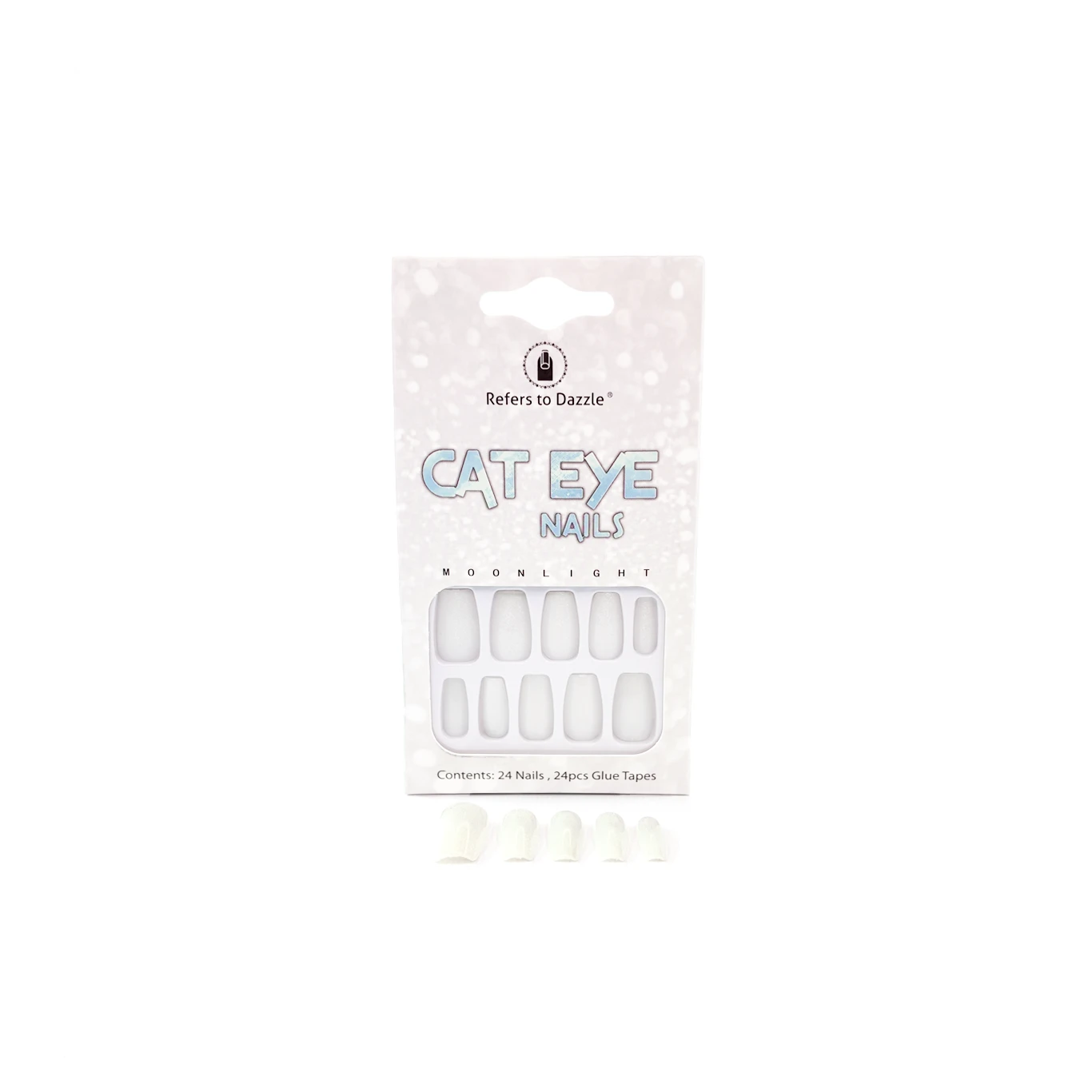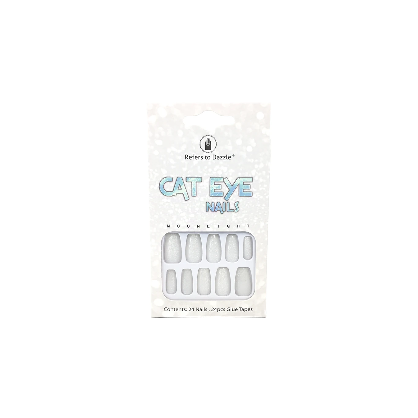 Cada paquete incluye 24 uñas de diferentes tamaños, asegurando un ajuste perfecto para cada dedo. Además, vienen con 24 piezas de cinta adhesiva para una aplicación rápida y sin complicaciones. Ya sea para un evento especial o para un día de uso diario, las uñas Cat Eye Moonlight ofrecen un acabado brillante y duradero, con un toque sutil que resalta la belleza natural de tus manos.
